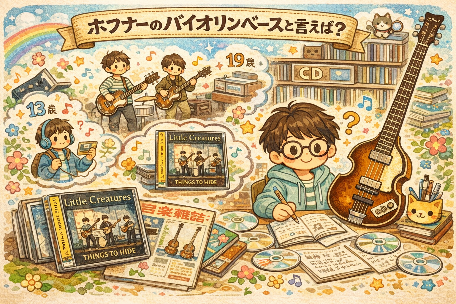 というわけで、ポッドキャストを始めたことをきっかけに、改めてミニアルバム「LITTLE CREATURES」(1990年11月21日発売)を購入し、「THINGS TO HIDE」を聴いてみました。ホフナーのバイオリンベースから始まるこの曲は19歳が作る音楽、13歳が聞く音楽としては「早すぎる」と思えますが、だからこそ今日も聴ける音楽であると思います。